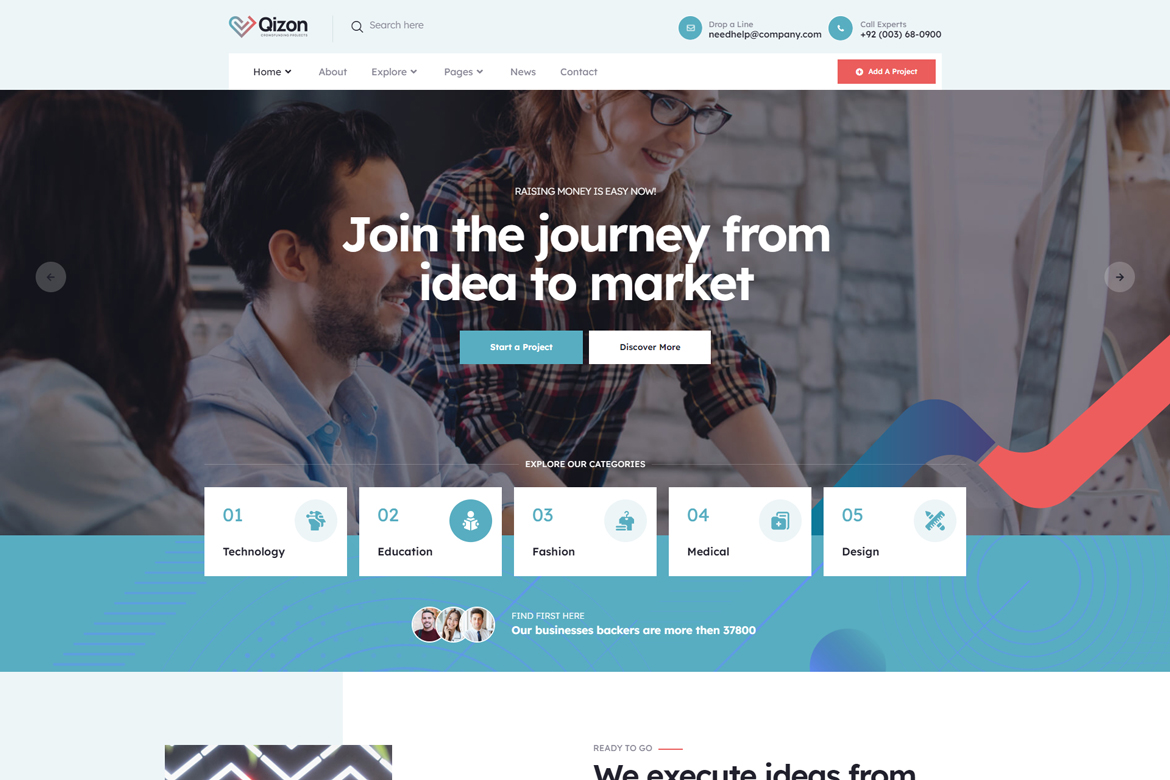 Qizon template – Crowdfunding Projects Template Kit is a modern and clean Elementor Template Kit ideal for all types of crowdfunding businesses, charities, fundraising, nonprofit, NGO, donations, church, Mosque and all other non-profit charity & crowdfunding websites and businesses.